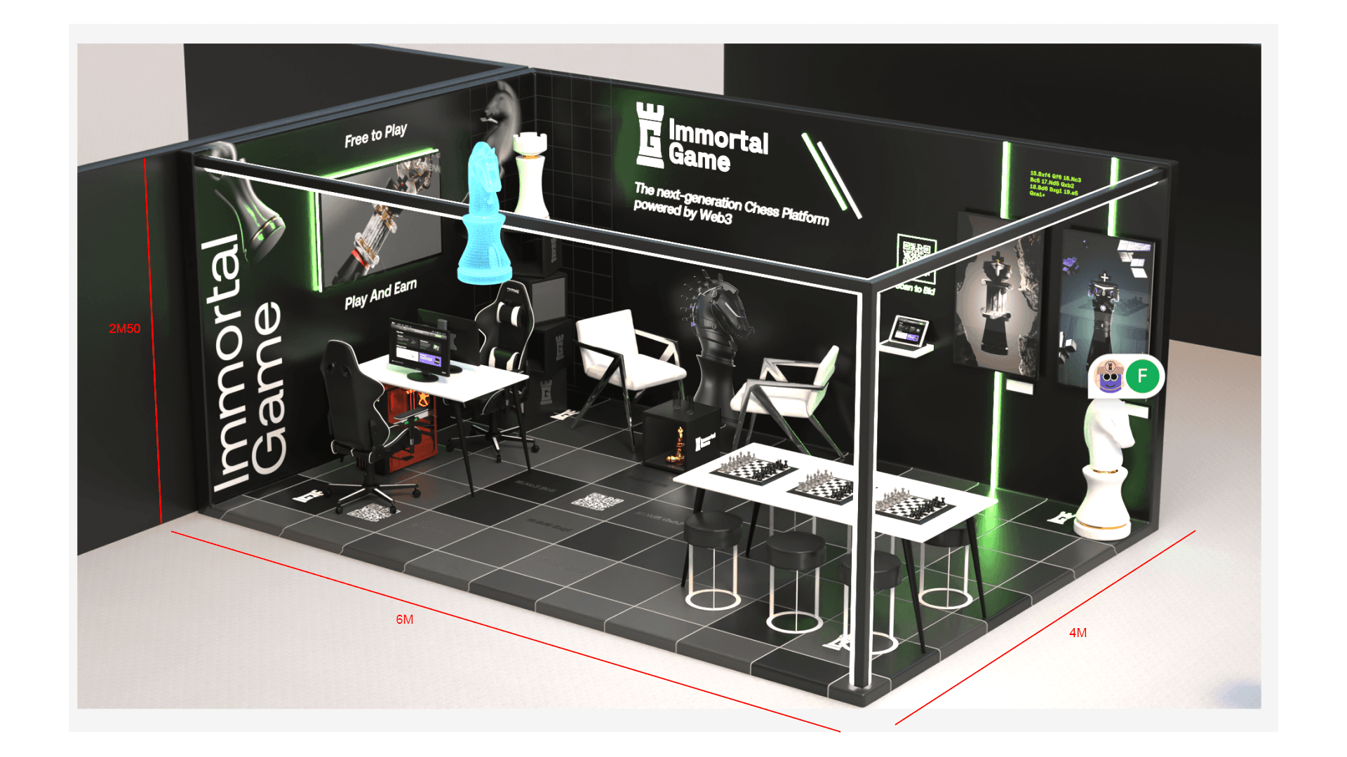 NFT exhibitions have to reflect the digital and new coming way of experiencing the world. My point was to help attendees to have a custom booth with special designs and amazing experiences. From all over the world, people come to experience the NFT collection and feel what make them special. My strong belief was to use new technologies in order to create a parallel between NFT and the future. I worked then on different universes and created design purposes and custom experiences on booths. From a custom video game with an horses game for PMU to an hologram cat walk for a digital fashion brand called Danit Peleg, we designed and created around 40 sketches and propositions.